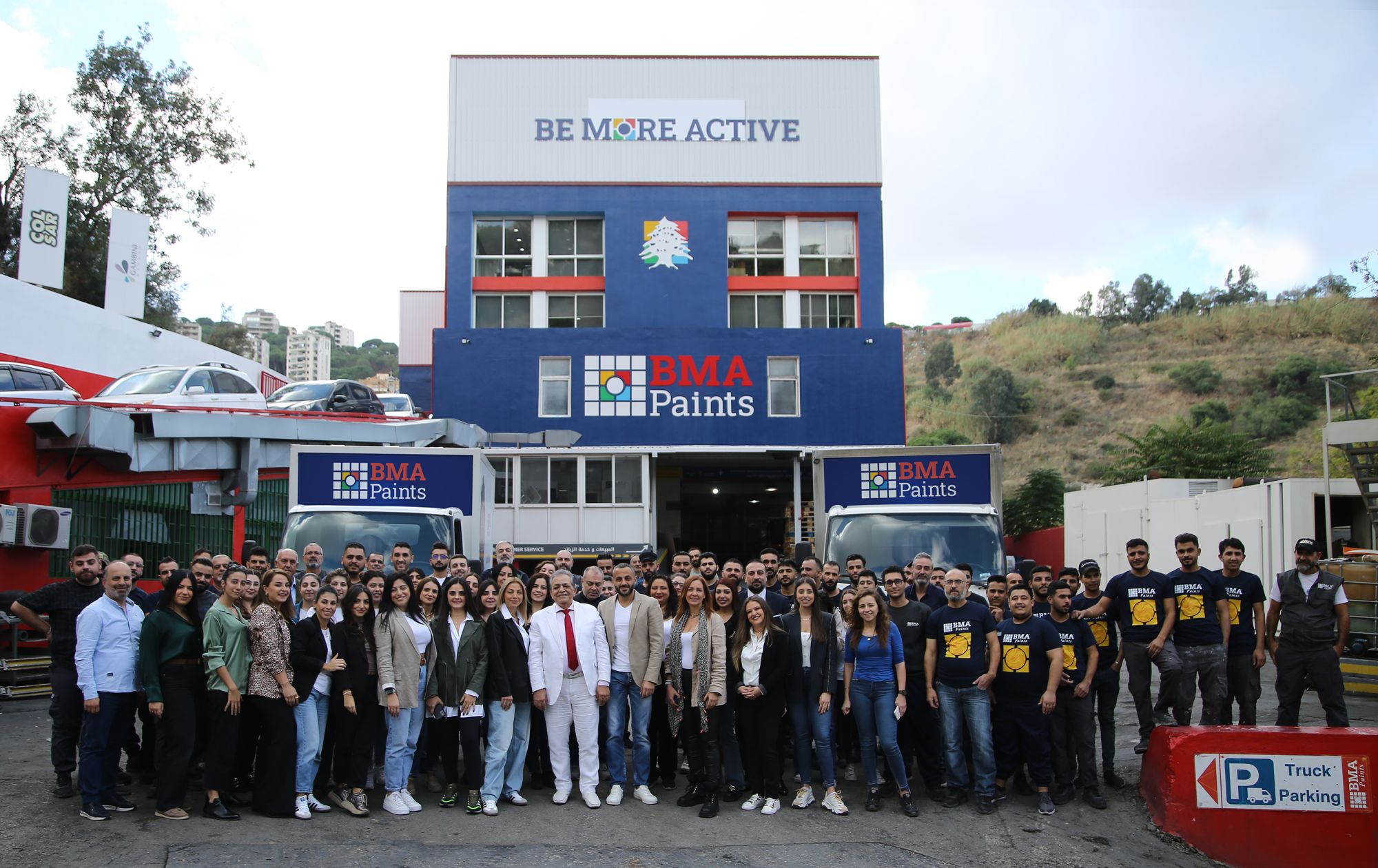 In a significant moment for BMA Paints, over 150 talented individuals gathered in front of our newly painted factory, proudly showcasing our refreshed identity. This event featured our founder, Mr. Maurice, alongside Mr. Antonio Hassoun, our General Manager, and Mrs. Berna Hassoun, our HR Manager.